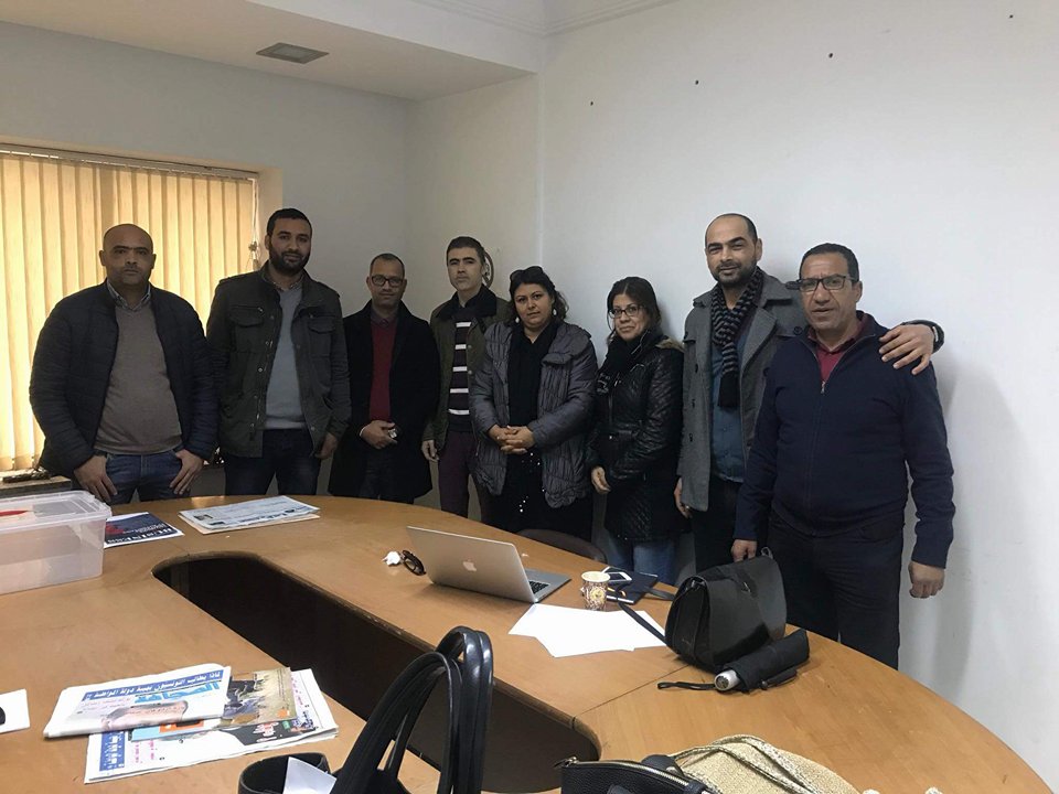 عقدت اليوم الأربعاء 27 ديسمبر 2017 جلسة عامة انتخابية بمقر دار سنيب لابراس، بإشراف عضو المكتب التنفيذي للنقابة المكلف بالنظام الداخلي محمد ياسين الجلاصي.