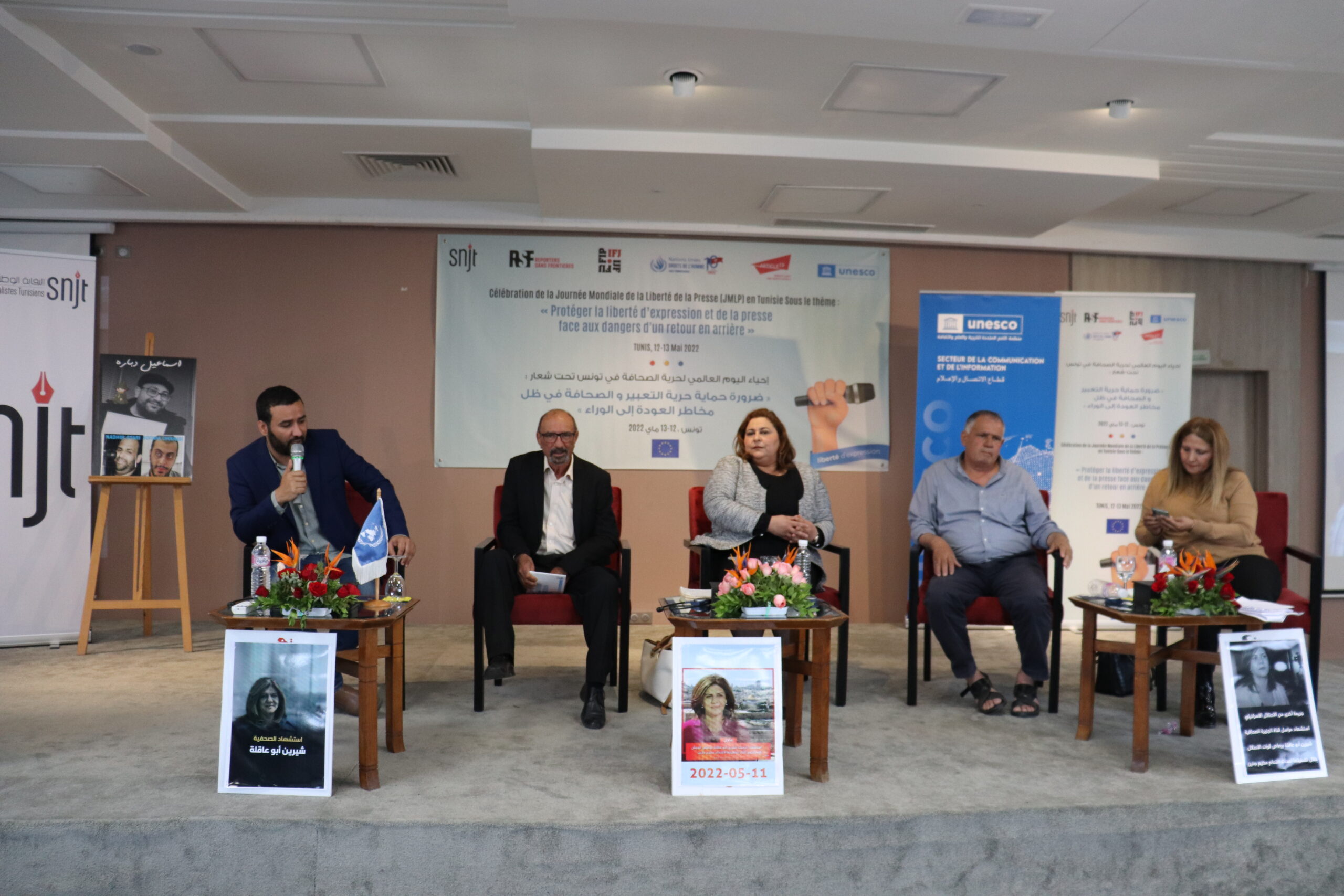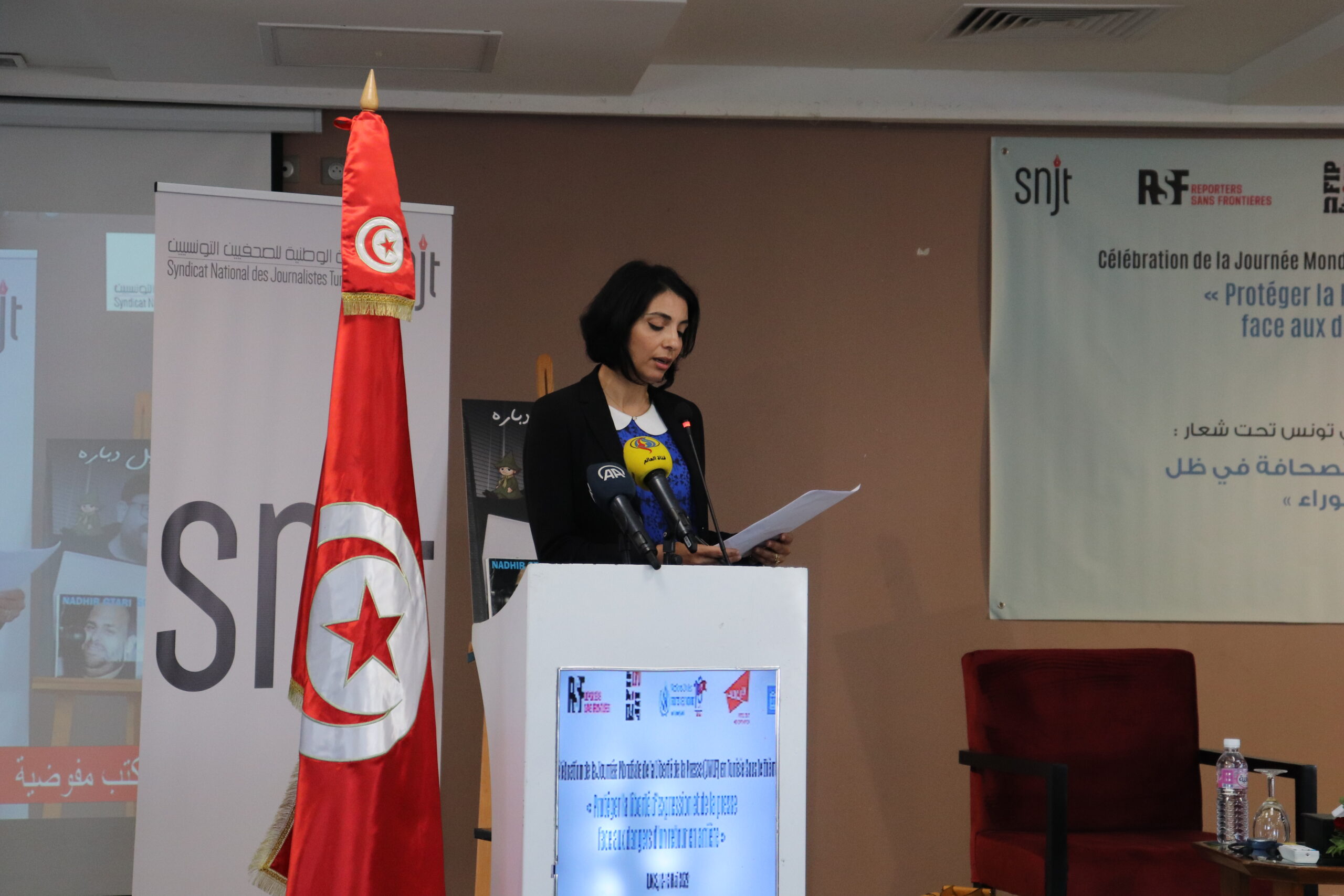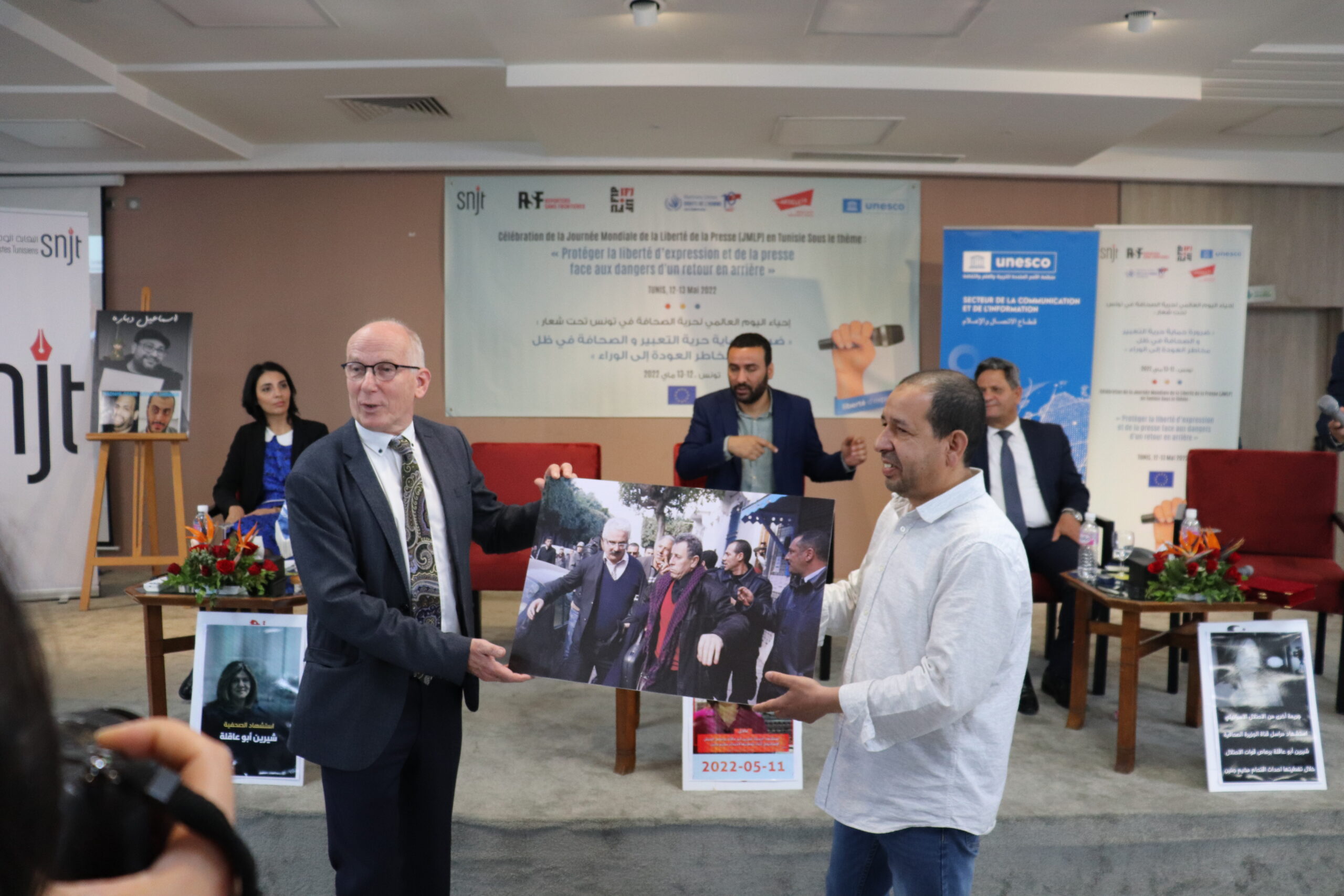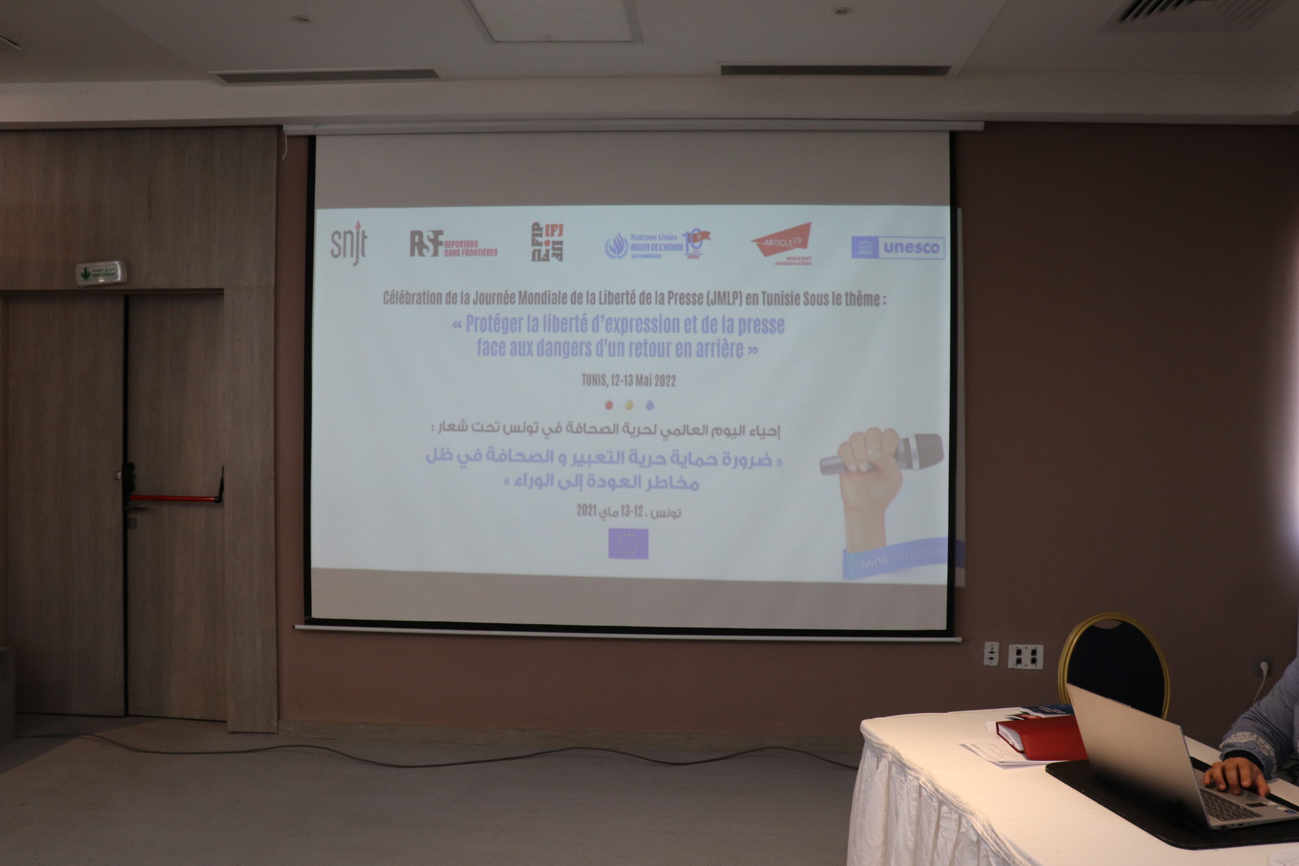 و بناءً على ذلك نظمت النقابة الوطنية للصحفيين التونسيين وشركائها الوطنيين والدوليين اليوم العالمي لحرية الصحافة تحت شعار: ضرورة حماية حرية التعبير والصحافة في ظل مخاطر العودة إلى الخلف