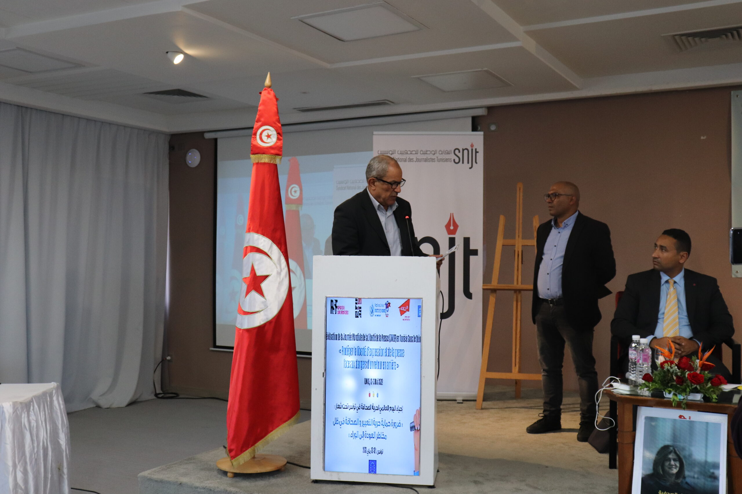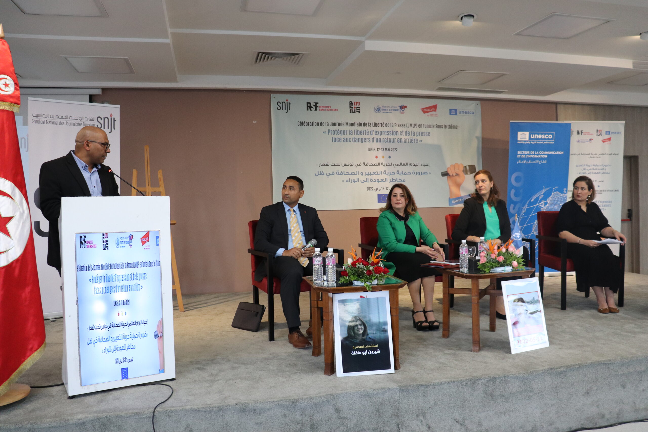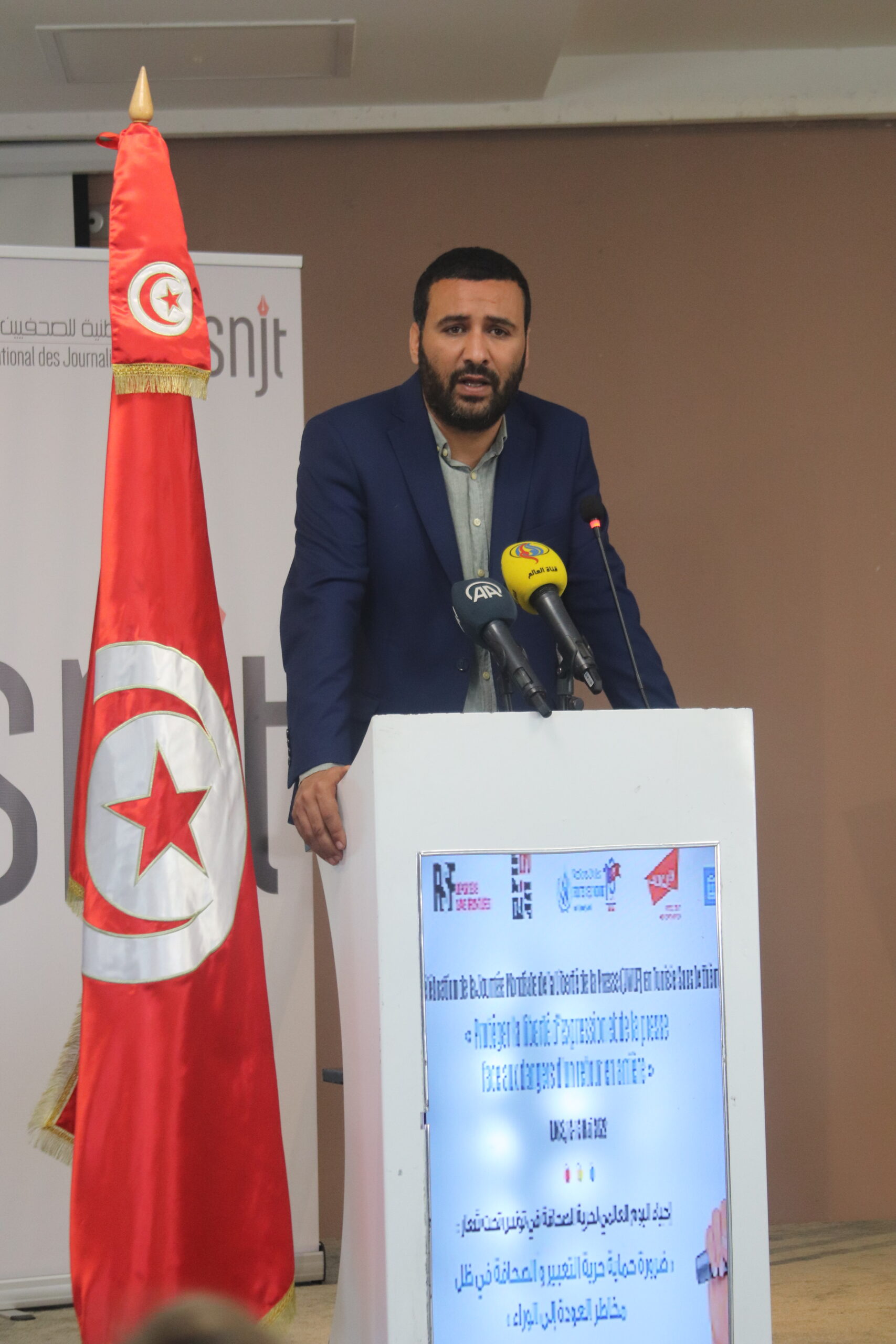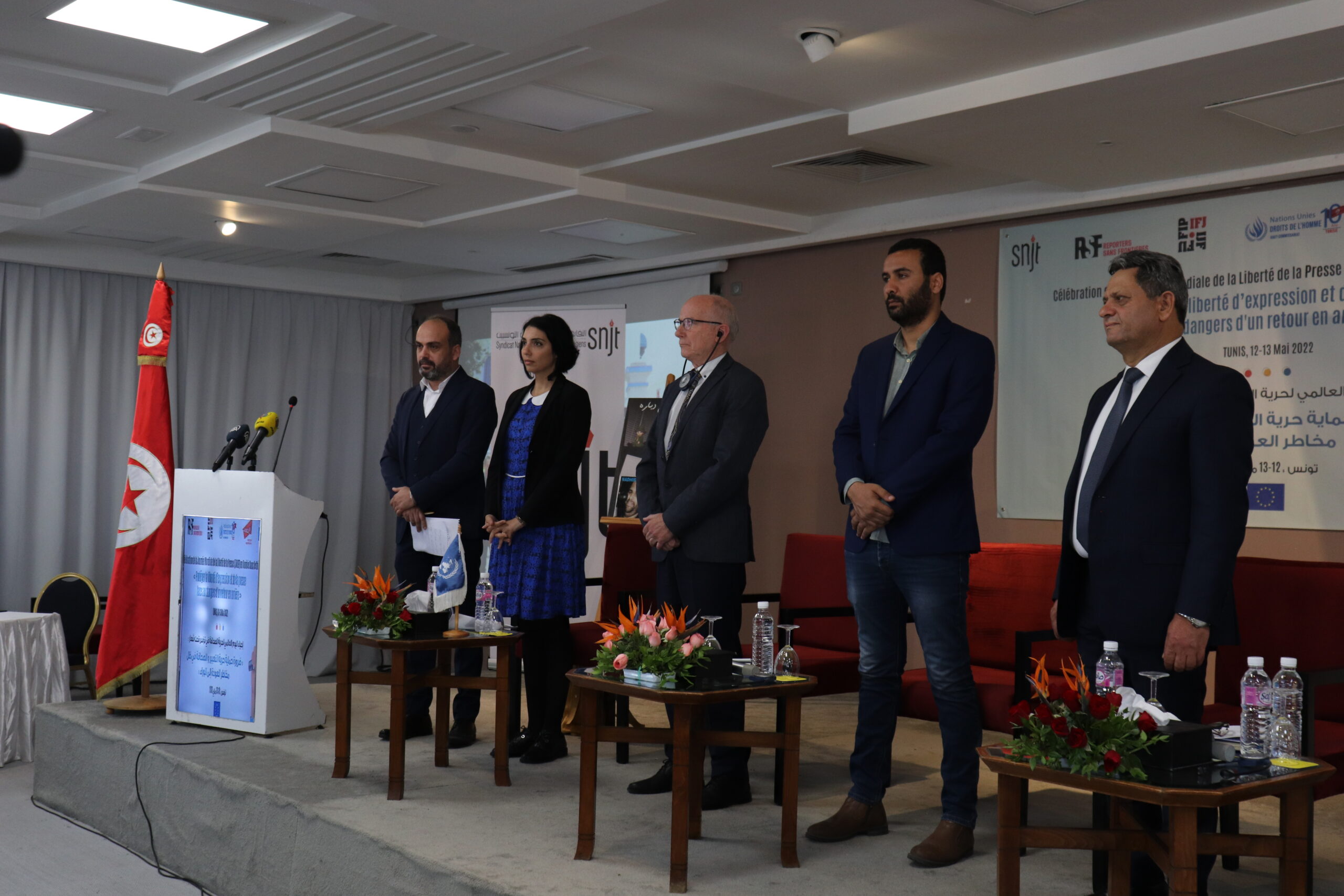 و بناءً على ذلك نظمت النقابة الوطنية للصحفيين التونسيين وشركائها الوطنيين والدوليين اليوم العالمي لحرية الصحافة تحت شعار: ضرورة حماية حرية التعبير والصحافة في ظل مخاطر العودة إلى الخلف
