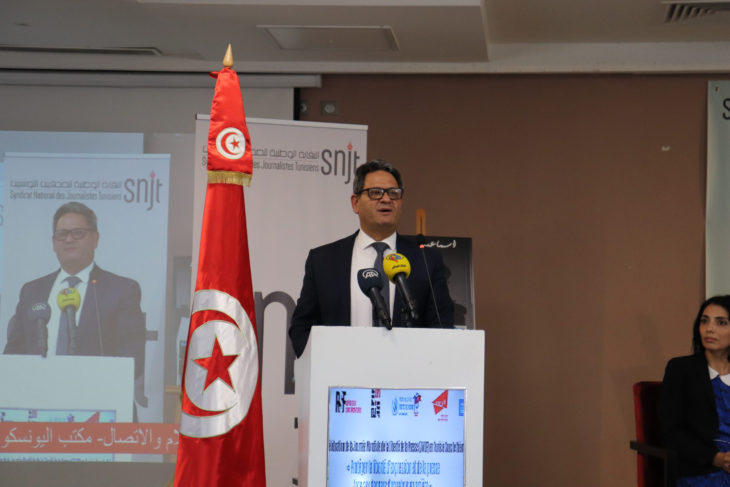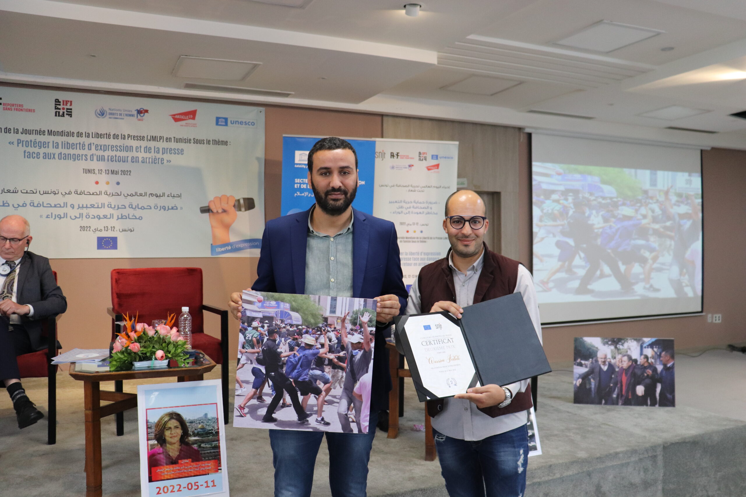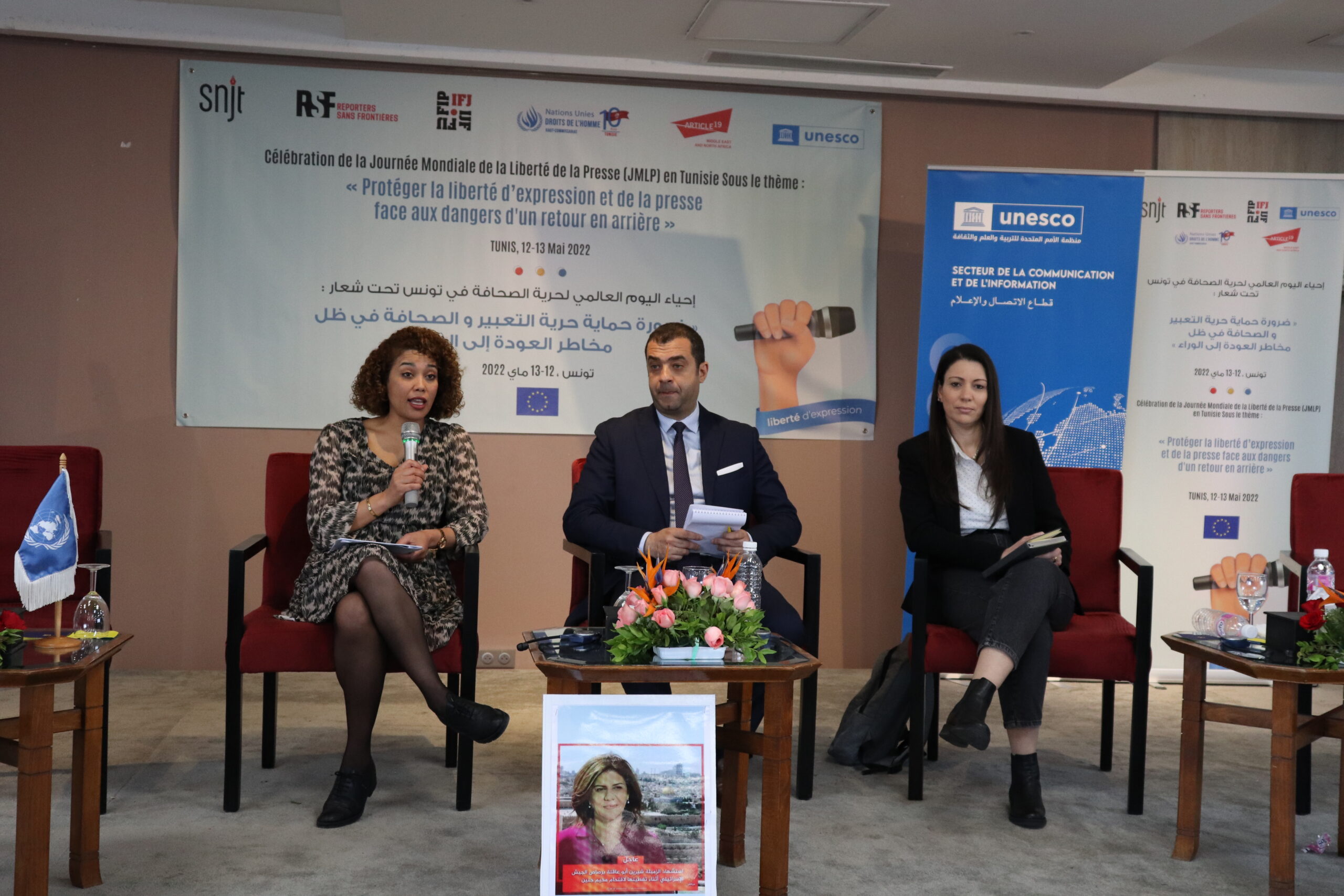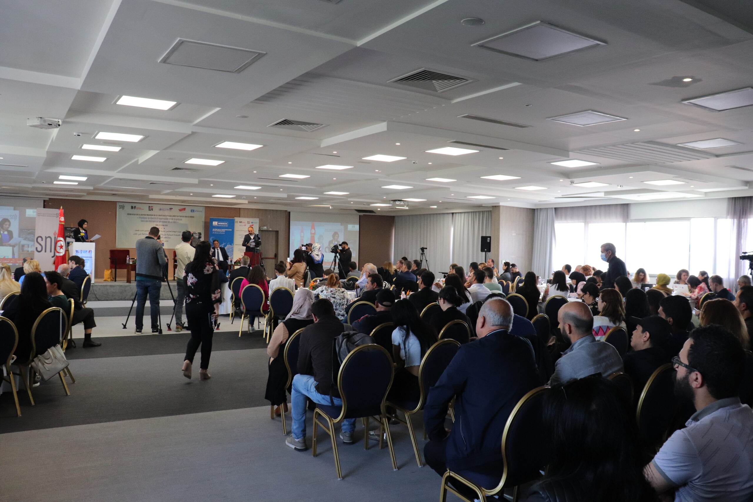 و بناءً على ذلك نظمت النقابة الوطنية للصحفيين التونسيين وشركائها الوطنيين والدوليين اليوم العالمي لحرية الصحافة تحت شعار: ضرورة حماية حرية التعبير والصحافة في ظل مخاطر العودة إلى الخلف