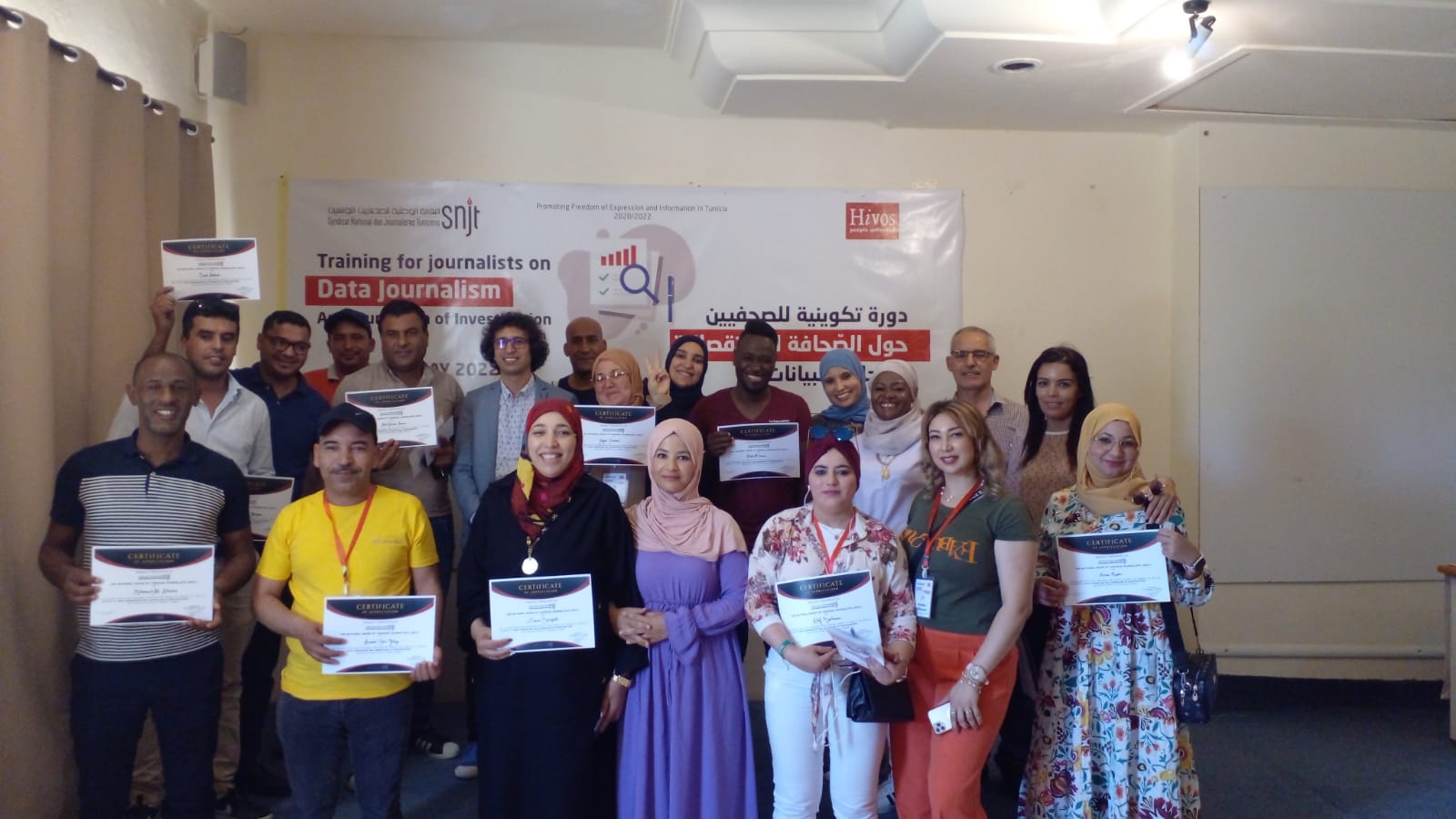 نظمت النقابة الوطنية للصحفيين التونسيين بالشراكة مع منظمة هيفوس، يومي السبت 28 والأحد 29 ماي 2022، دورة تدريبية حول صحافة البيانات والصحافة الاستقصائية في جزيرة جربة لفائدة 21 صحفي وصحفية من مختلف وسائل الإعلام والولايات