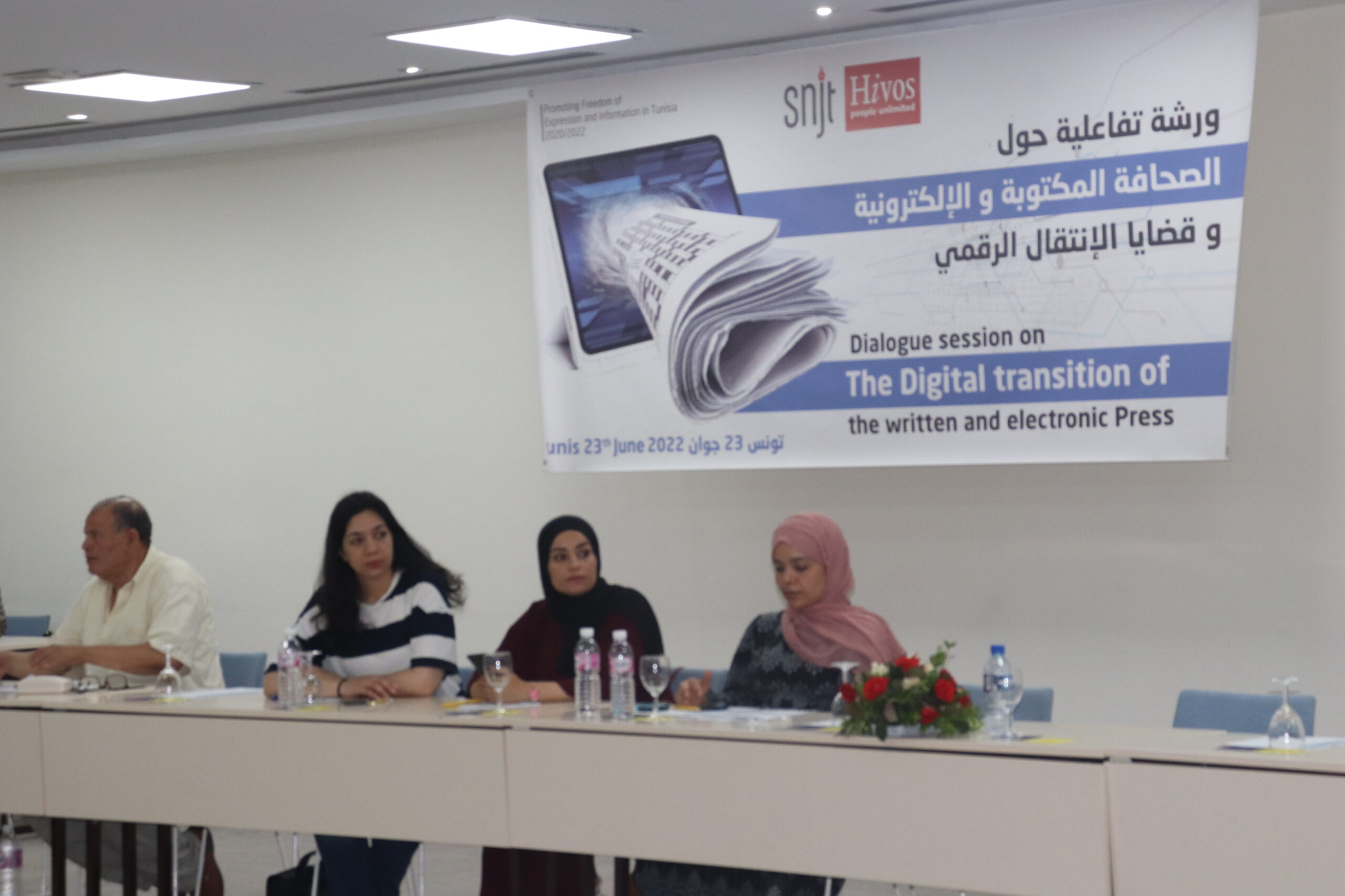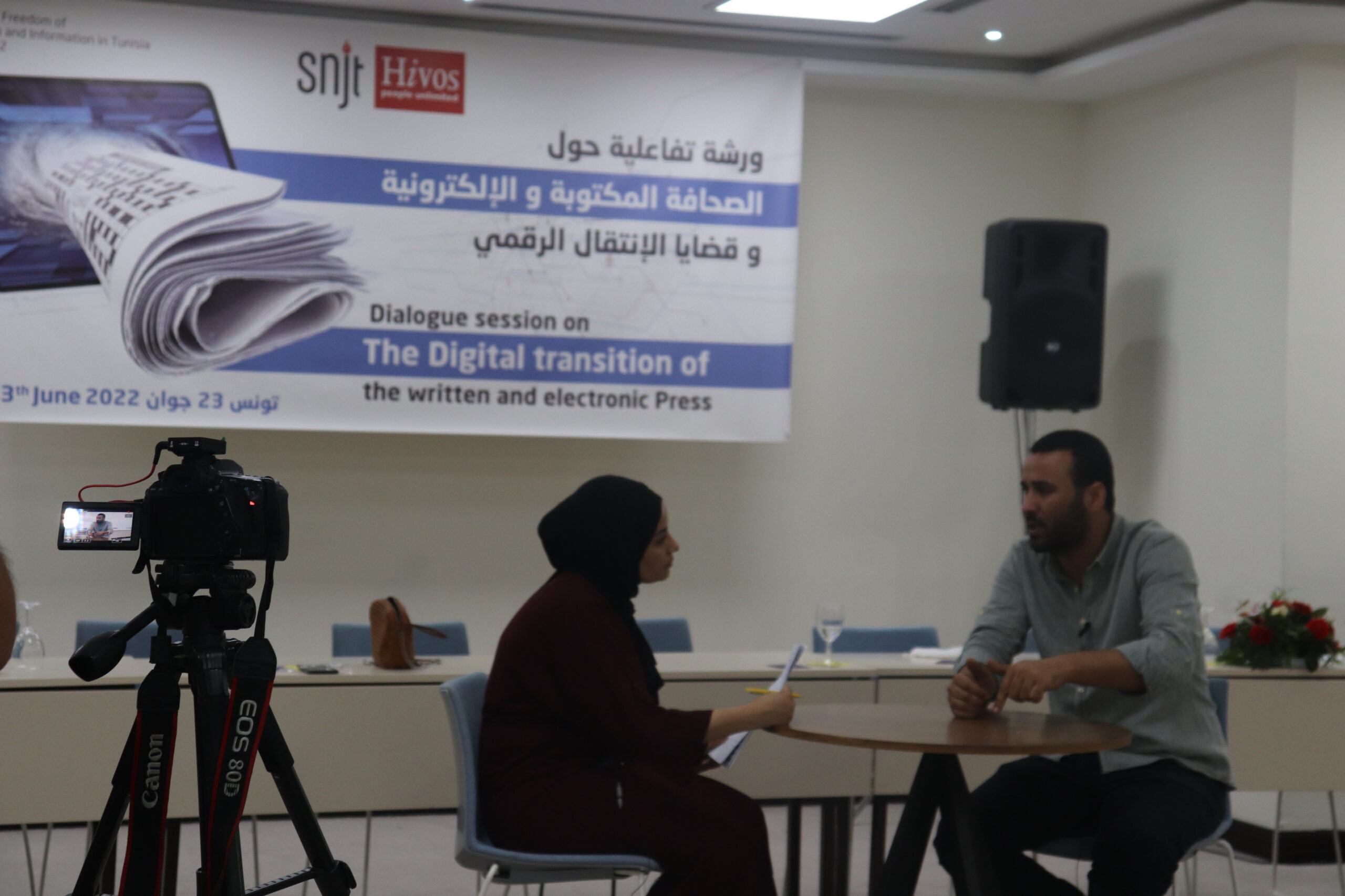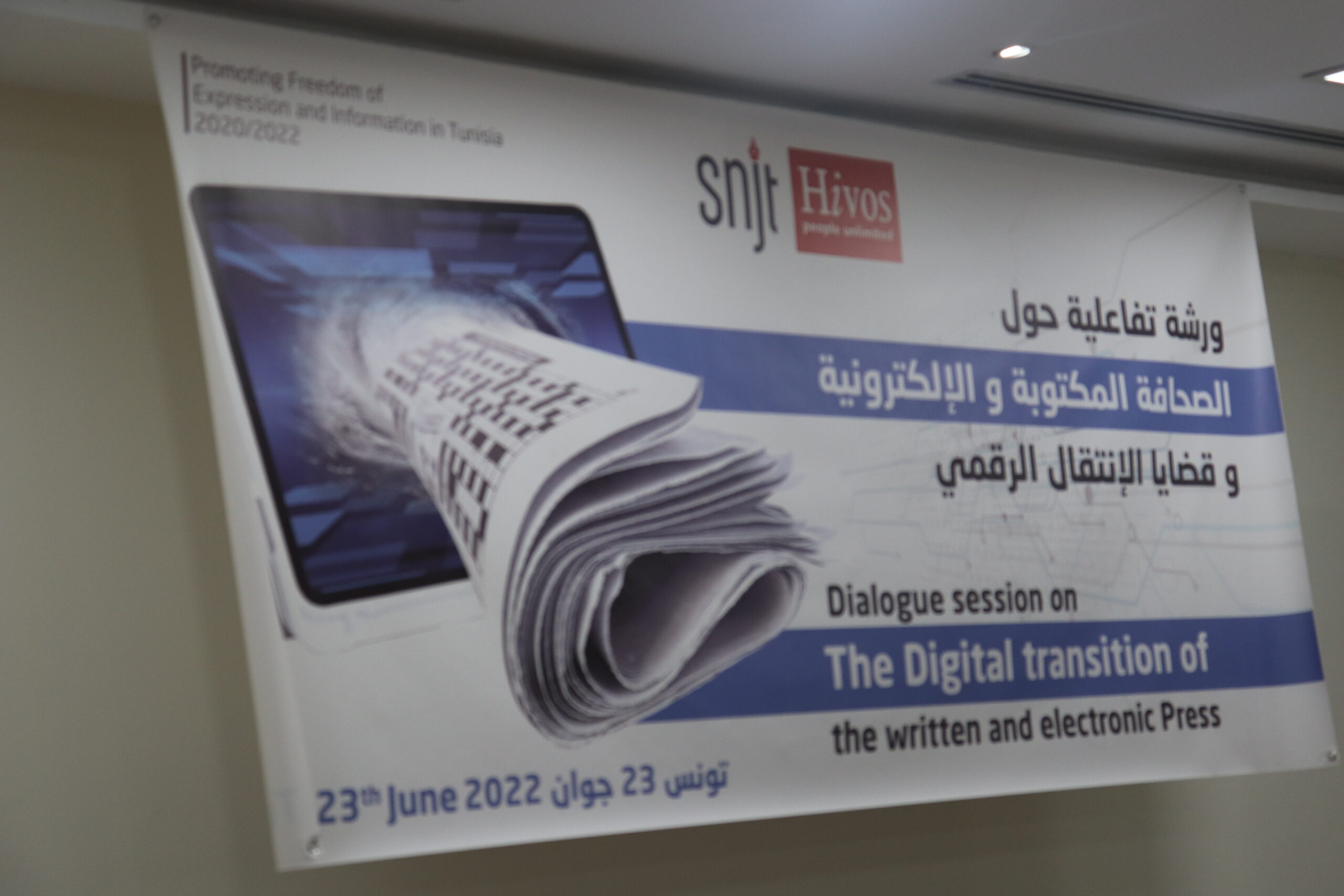 في اطار دعم جهودها في حماية وتنظيم حرية التعبيير والاعلام في هذا المسار الاستثنائي ومتابعة لجملة اللقاءات المتصلة بالأنشطة المتعلقة بمسار التحضير للمؤتمر الوطني للسياسات العمومية، انتظمت يوم 23 جوان 2022 بتونس العاصمة ثاني ورشة عمل تفاعلية حول اشكاليات الانتقال الرقمي للصحافة المكتوبة والالكترونية بمشاركة قرابة 40 صحفي وصحفية وممثلين عن أصحاب المصلحة من هياكل مهنية وأصحاب مؤسسات إعلامية ومنظمة المادة 19 بتأطير من كل من السيد محمد العروسي عن جامعة مديري الصحف والدكتور خليل الجلاصي، باحث في المجال الرقمي للاعلام.