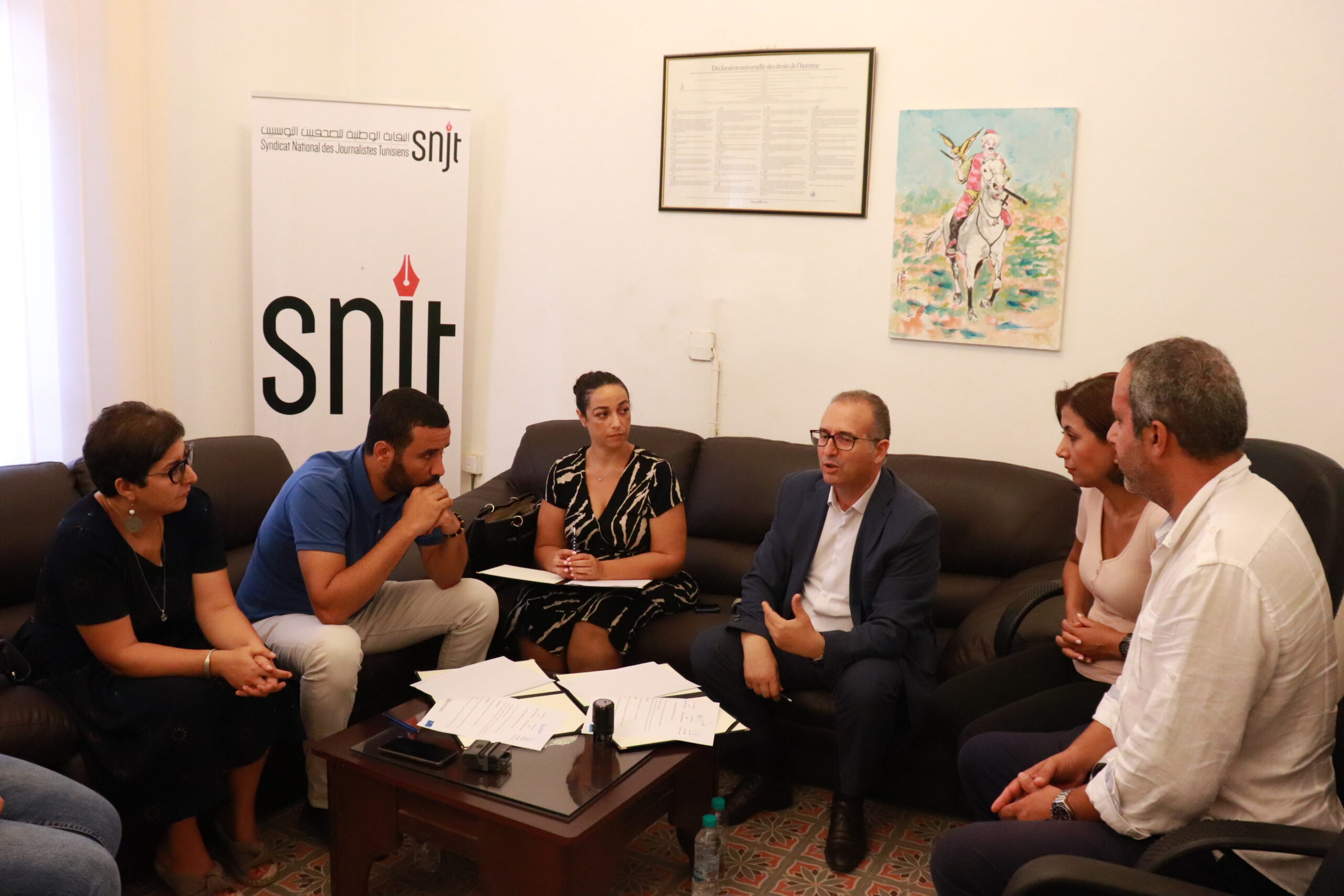 وقد حضر اللقاء كل من نائبة نقيب الصحفيين السيدة أميرة محمد ومديرة المشاريع في تونس أرض اللجوء السيدة أمل الجربي ومديرة إذاعة السيدة أ.نجوى الهمامي والمكلف بالتطوير المهني والتدريب والسلامة المهنية بنقابة الصحفيين السيد ياسين البحري ومنسقة برنامج الهجرة في المعهد العربي لحقوق الإنسان السيدة مريم نقاوي.