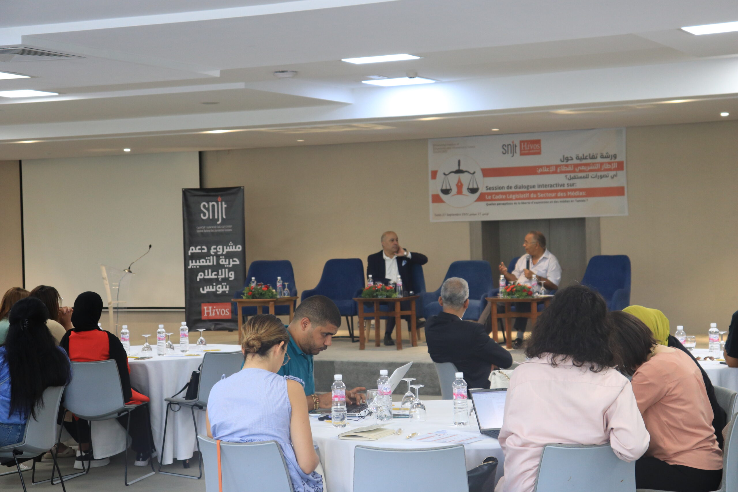 ورشة تفاعلية حول الاطار التشريعي لقطاع الاعلام، و تم خلال هذا اللقاء التطرق لعدة مواضيع أهمها الصعوبات التي يعيشها قطاع الاعلام في تونس، بالإضافة إلى غياب سياسة عامة واضحة فالتعاطي مع ملف الاعلام و خطورة المرسوم عدد 54 الذي يهدد حرية التعبير.