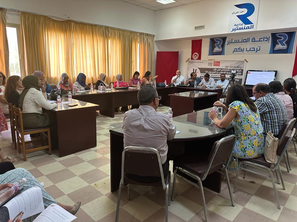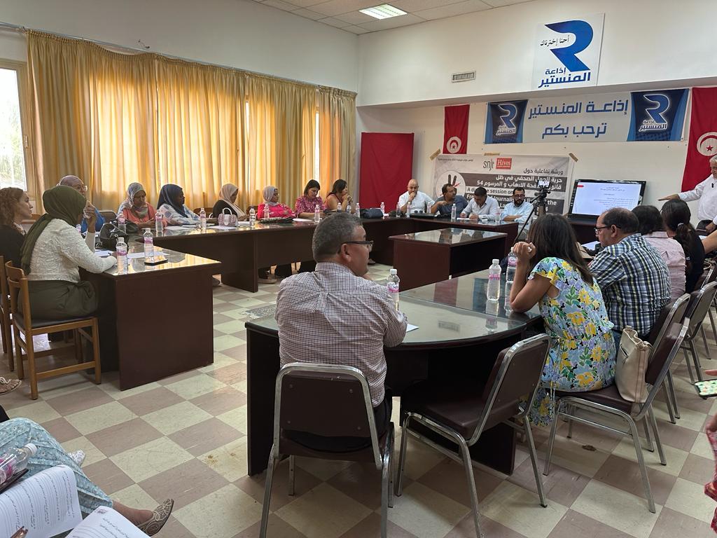 نظمت النقابة الوطنية للصحفيين التونسيين يوم السبت، 16 سبتمبر 2023، في إطار مشروع “دعم حرية التعبير والإعلام بتونس”،  بالشراكة مع منظمة ايفوس « HIVOS » ورشة تفاعلية حول موضوع  “حرية الصحافة في ظل قانون مكافحة الارهاب والمرسوم 54” لفائدة صحفيي وصحفيات الساحل و الجنوب الغربي  و ذلك بحضور عدد من الاساتذة المحامين .