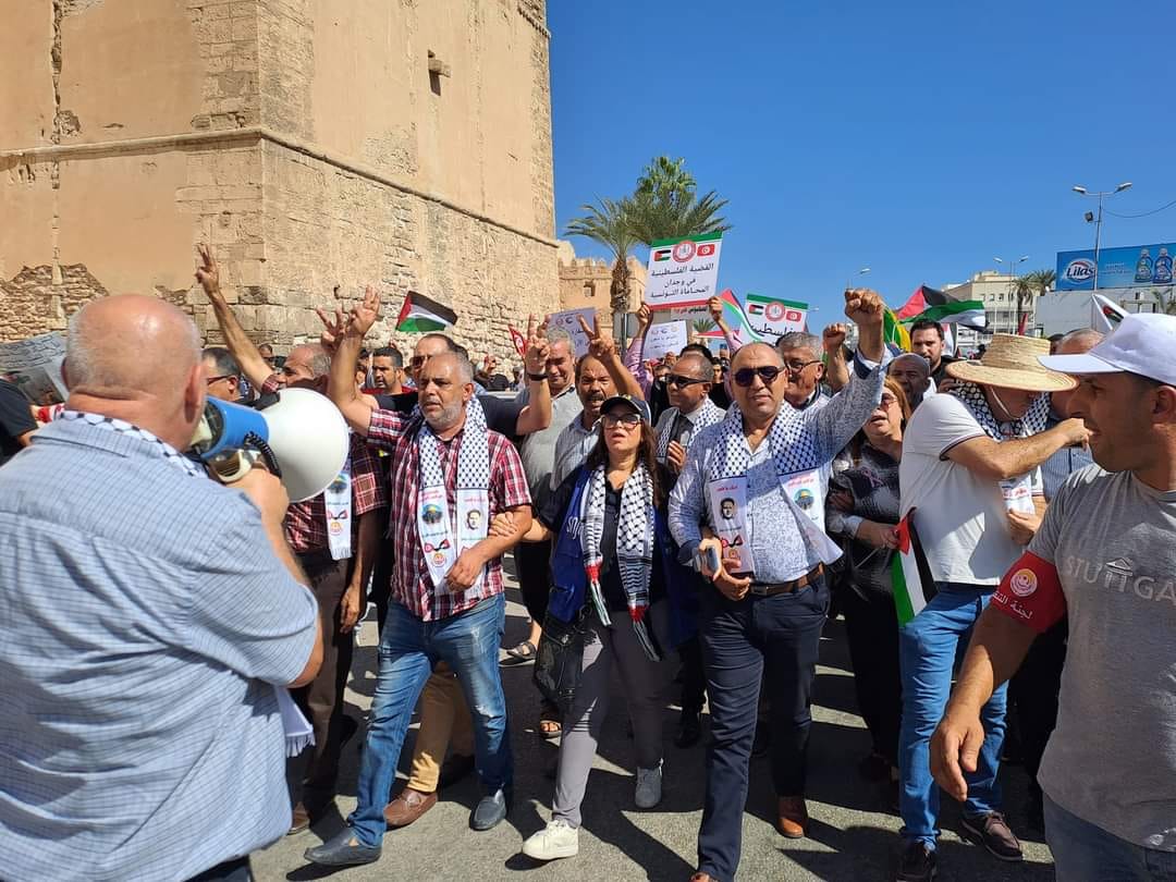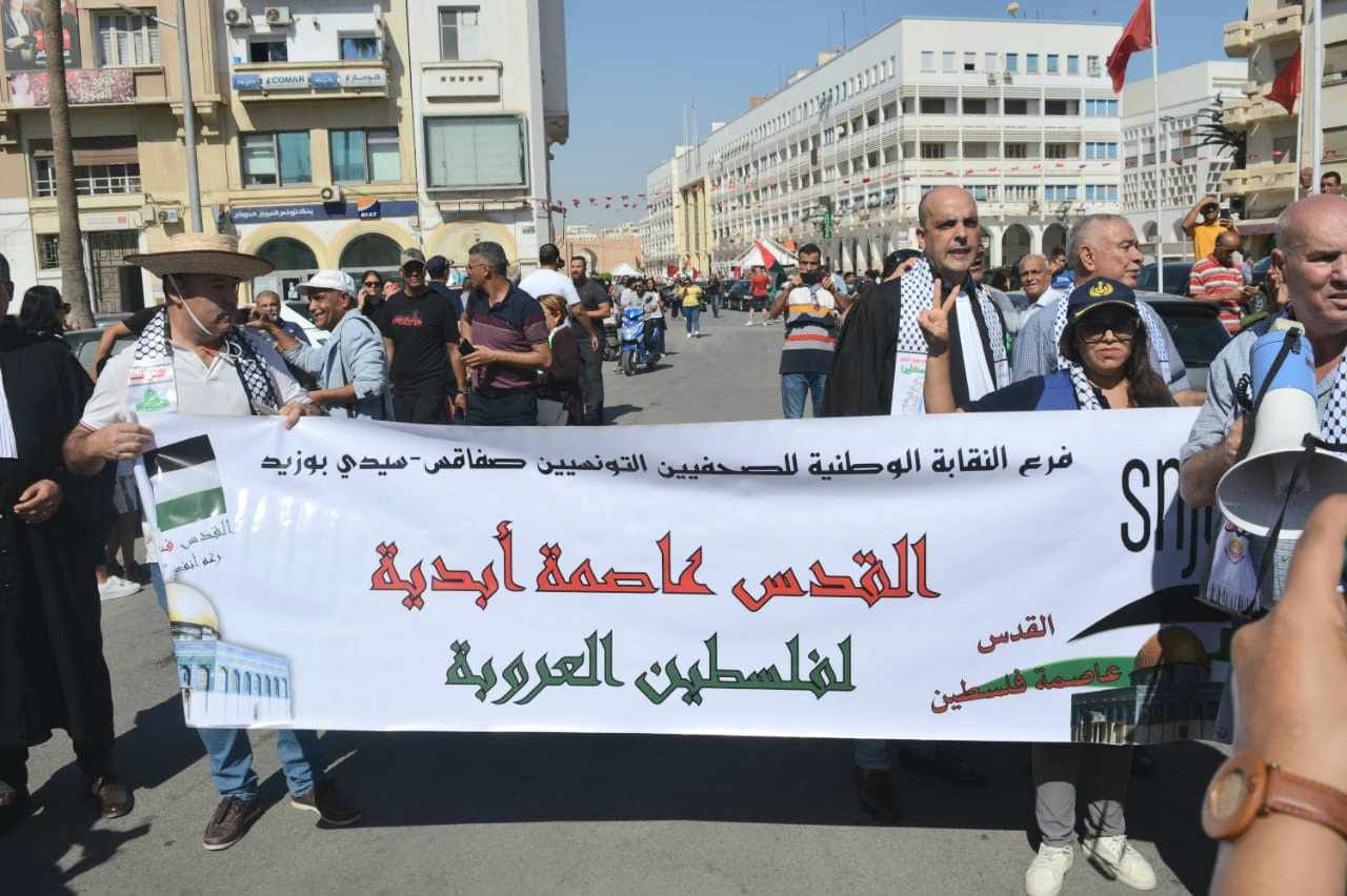شاركت النقابة الوطنية للصحفيين التونسيين اليوم السبت 14 أكتوبر 2023 بمدينة صفاقس في المظاهرة التي دعت لها القوى المدنية والشعبية والنقابية دعما للمقاومة الفلسطينية.
