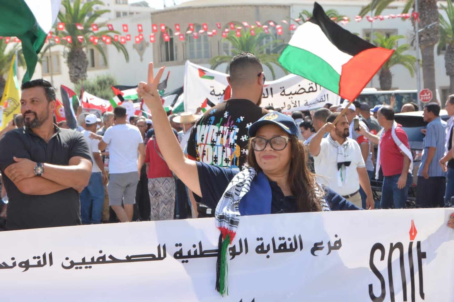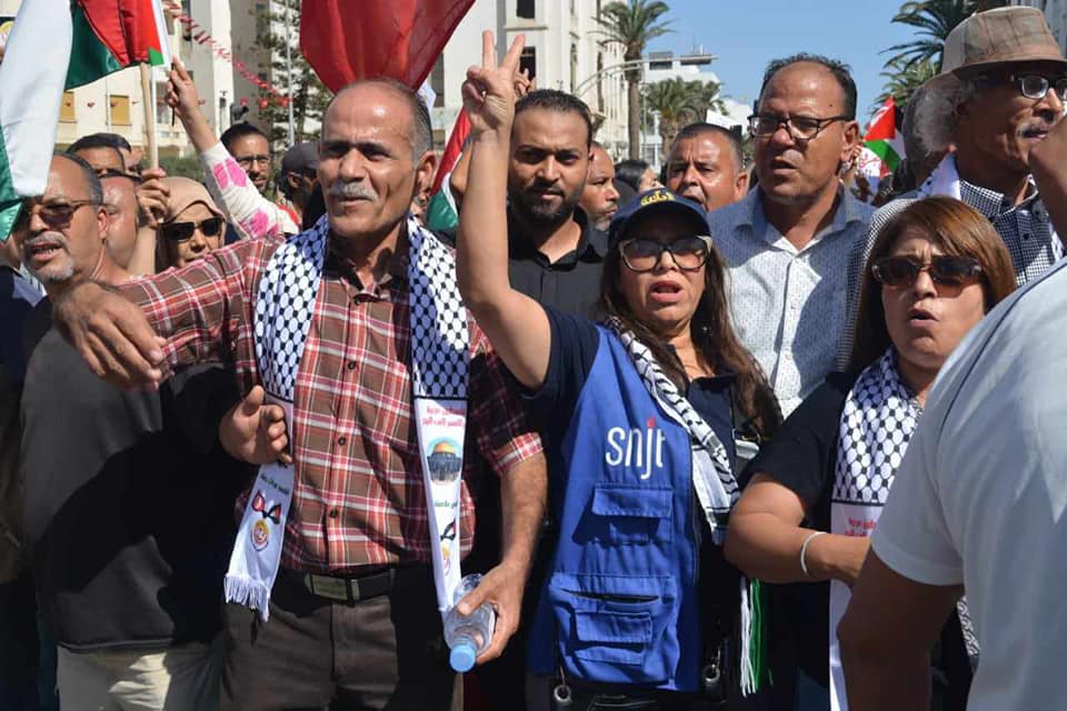 وقد كانت الزميلة زهور الحبيب عضوة المكتب التنفيذي للنقابة وعددا من الصحفيات والصحفيين في صدارة هذا التحرك التزاما بمواقف النقابة المبدئية تجاه القضية الفلسطينية.
