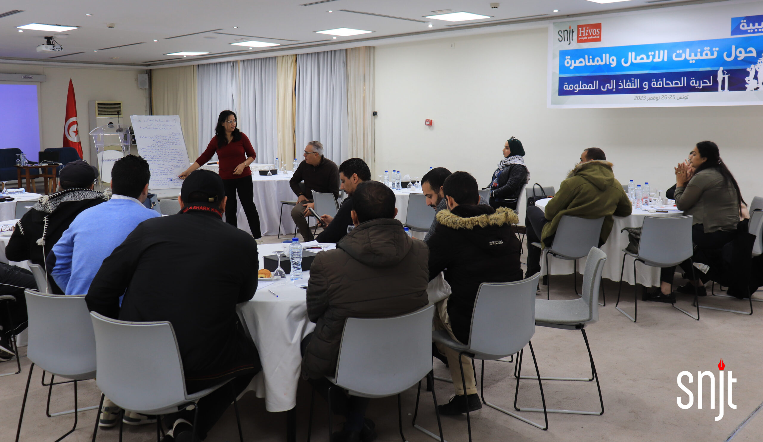 نظمت النقابة الوطنية للصحفيين التونسيين بالشراكة مع منظمة هيفوس HIVOS يومي السبت والأحد 25 – 26 نوفمبر 2023 ، دورة تدريبية حول تقنيات الاتصال والمناصرة وتداخل النصوص التشريعية في علاقة بالحريات الصحفية.