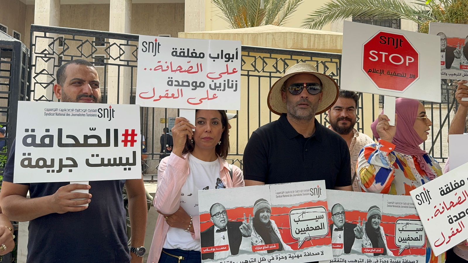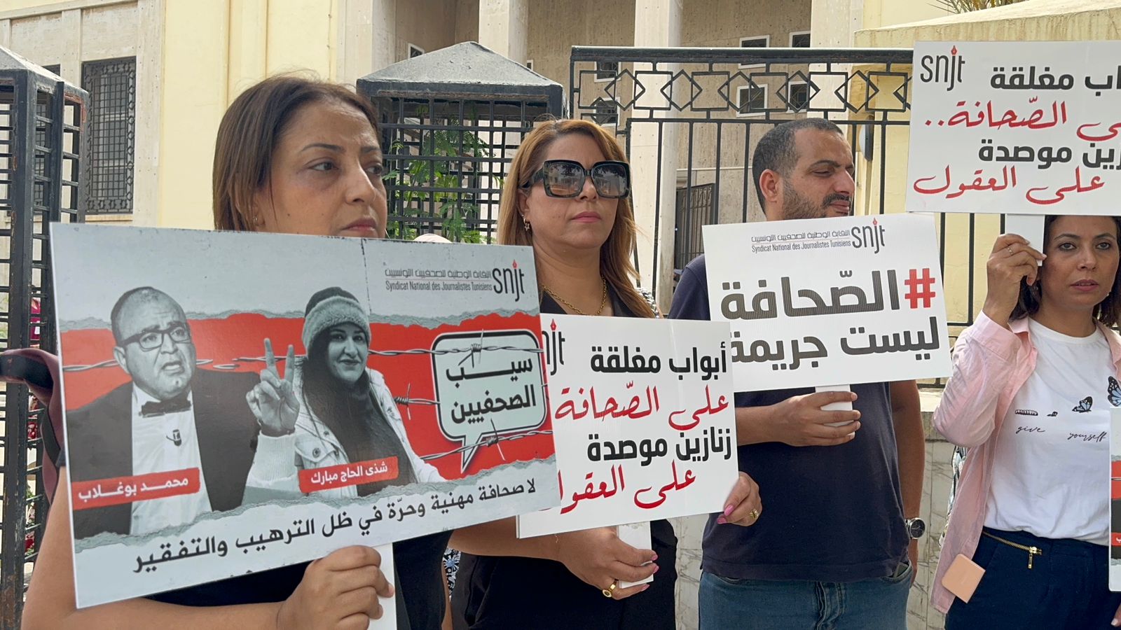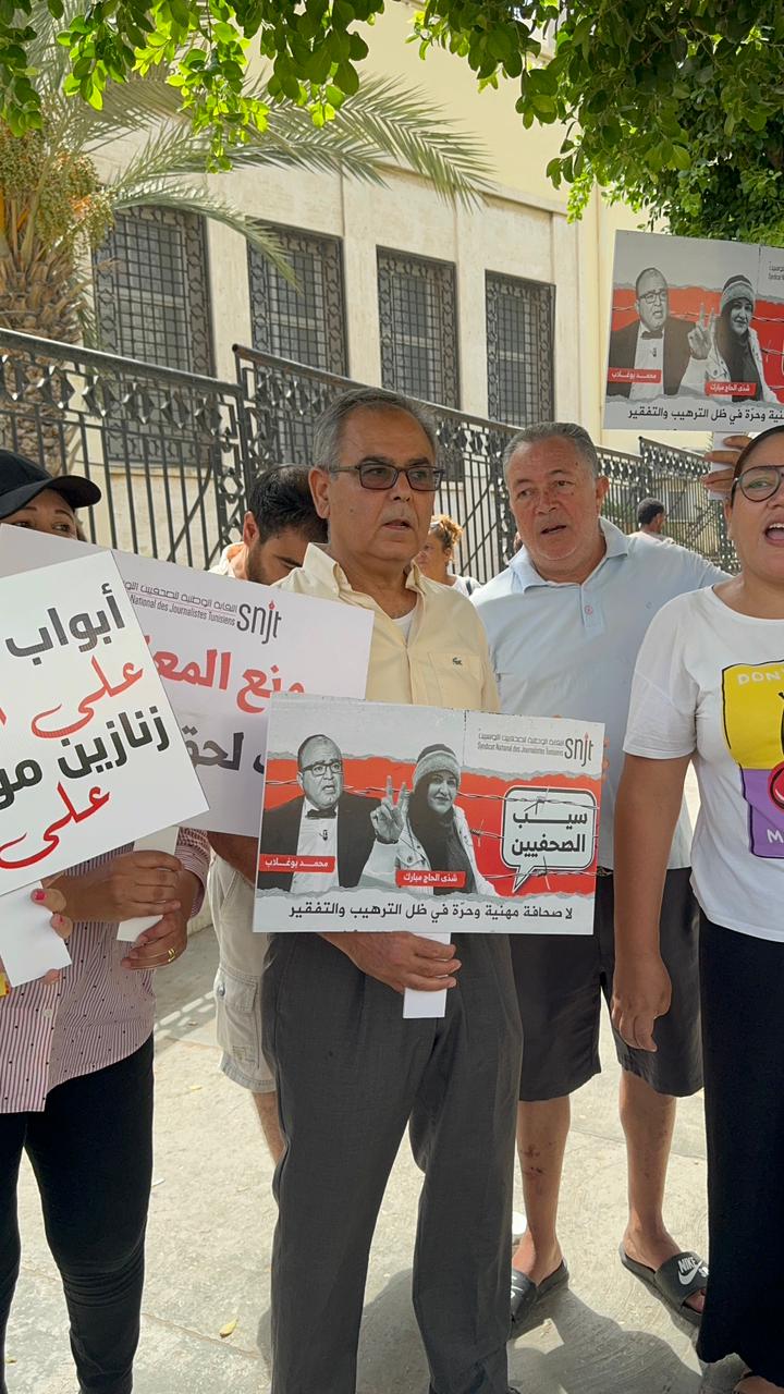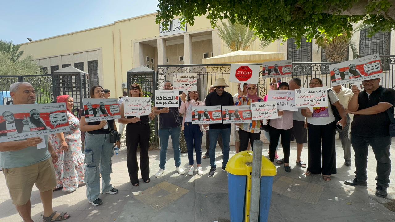 نظمت النقابة الوطنية للصحفيين التونسيين اليوم الإثنين 8 جويلية 2024 ، وقفة تضامنية أمام المحكمة الابتدائية سوسة 1 مع الزميلة شذى الحاج مبارك التي تنظر اليوم الدائرة الجنائية في ملفها المتعلق في ما يُعرف بقضية “انستالينغو”.