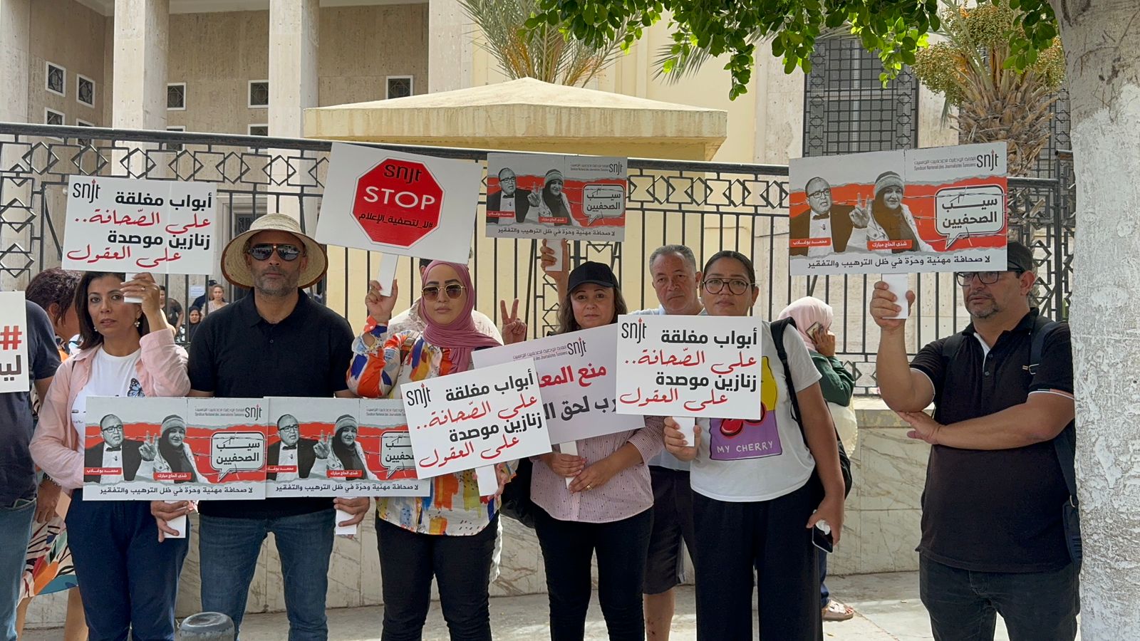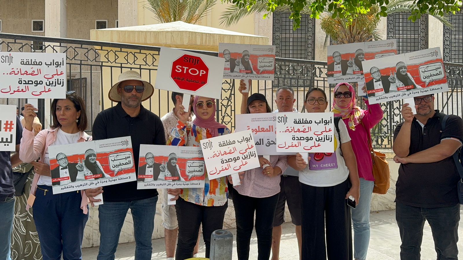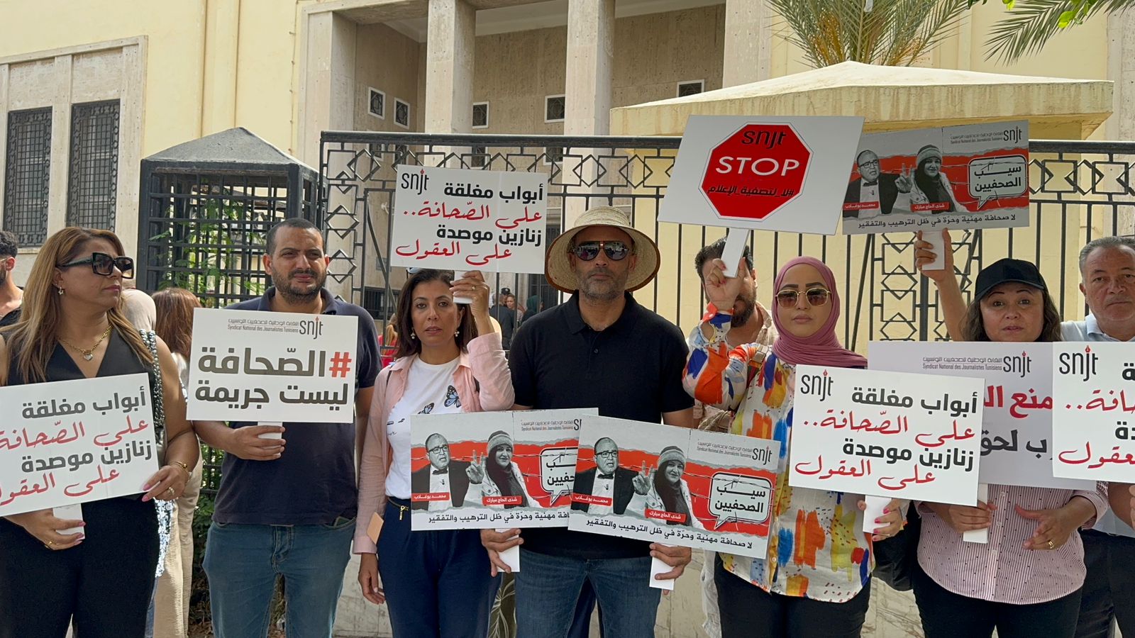 نظمت النقابة الوطنية للصحفيين التونسيين اليوم الإثنين 8 جويلية 2024 ، وقفة تضامنية أمام المحكمة الابتدائية سوسة 1 مع الزميلة شذى الحاج مبارك التي تنظر اليوم الدائرة الجنائية في ملفها المتعلق في ما يُعرف بقضية “انستالينغو”.