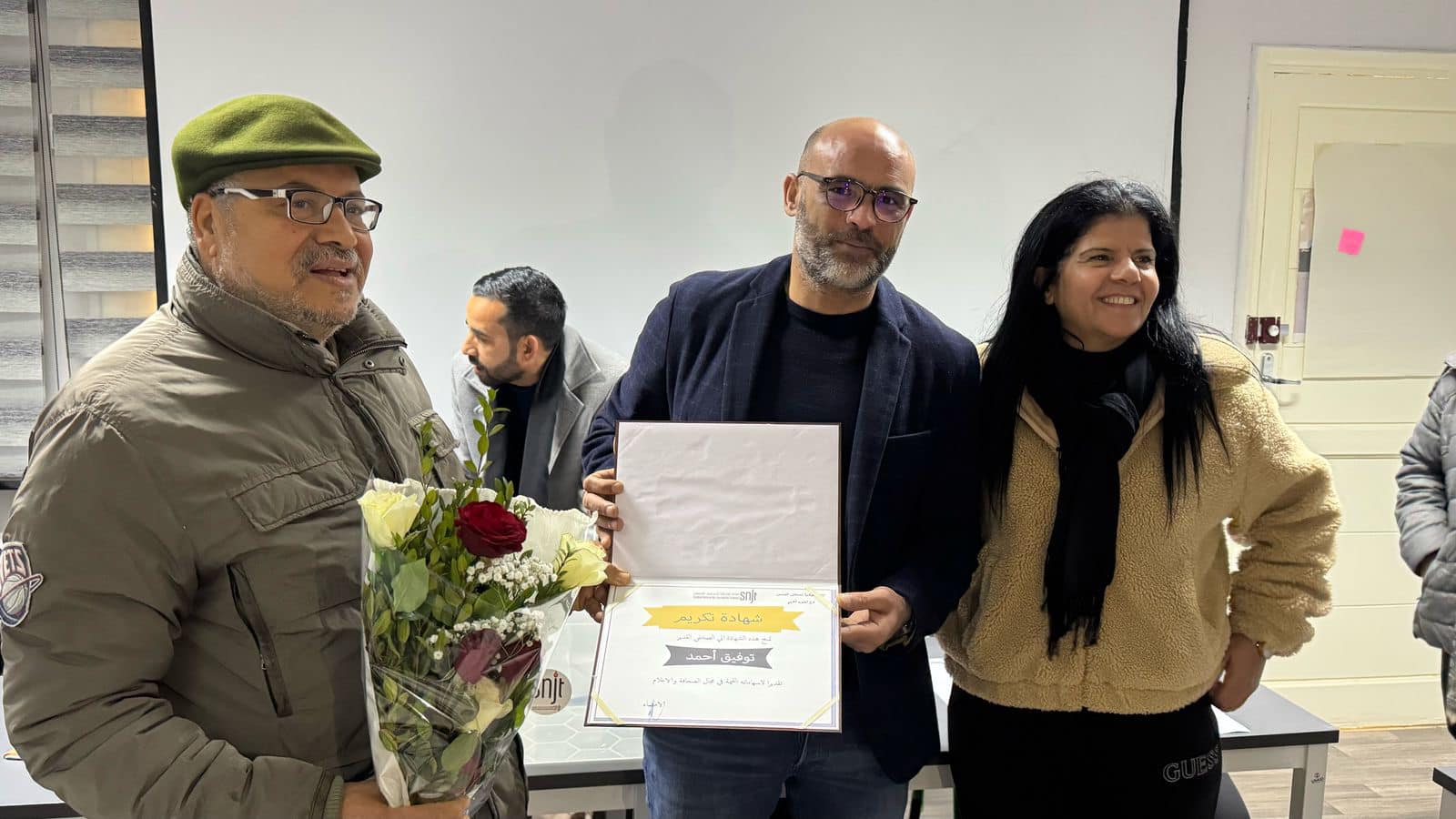 نقابة الصحفيين تكرم الزميلين توفيق أحمد وفريدة المبروكي