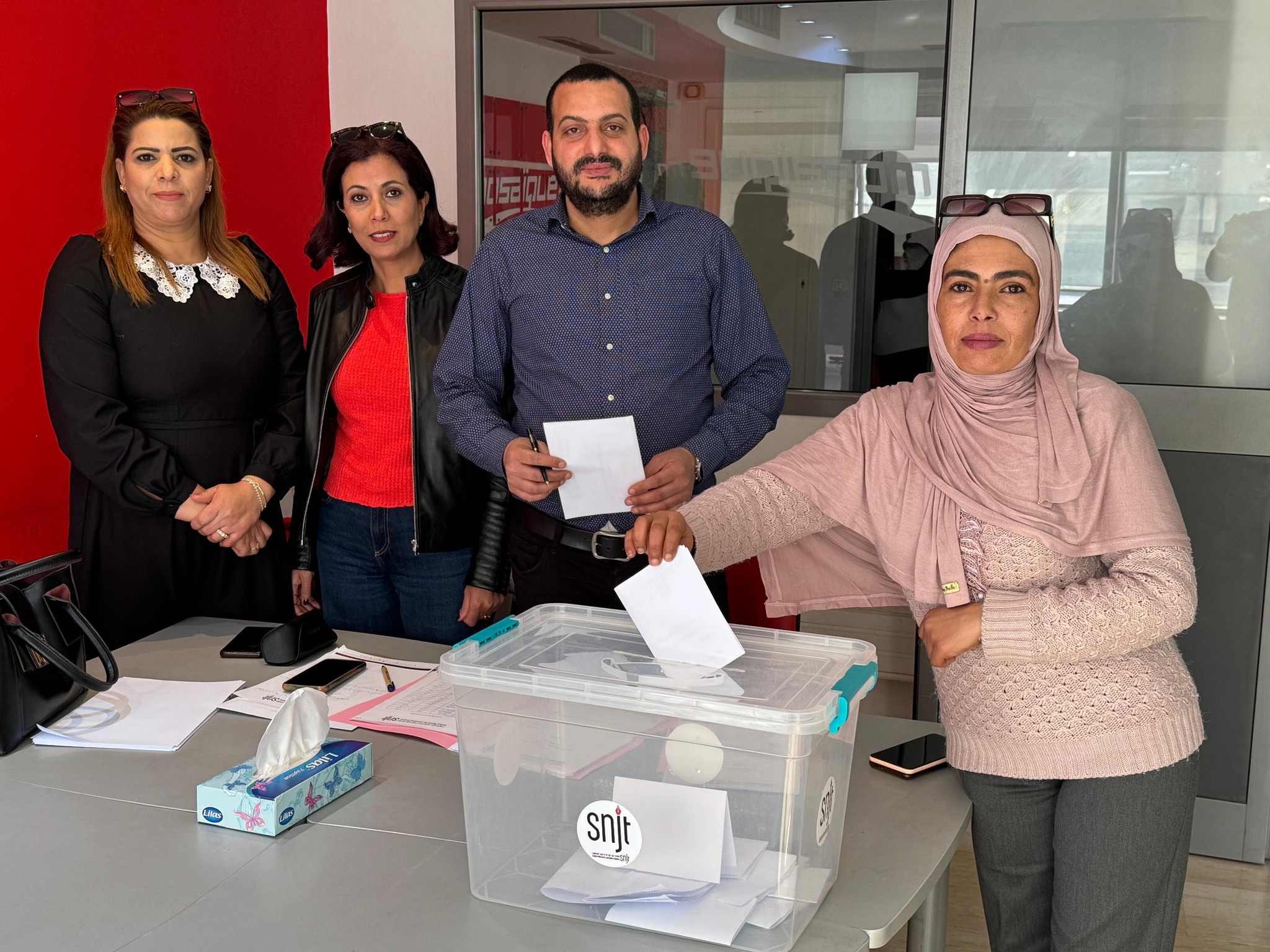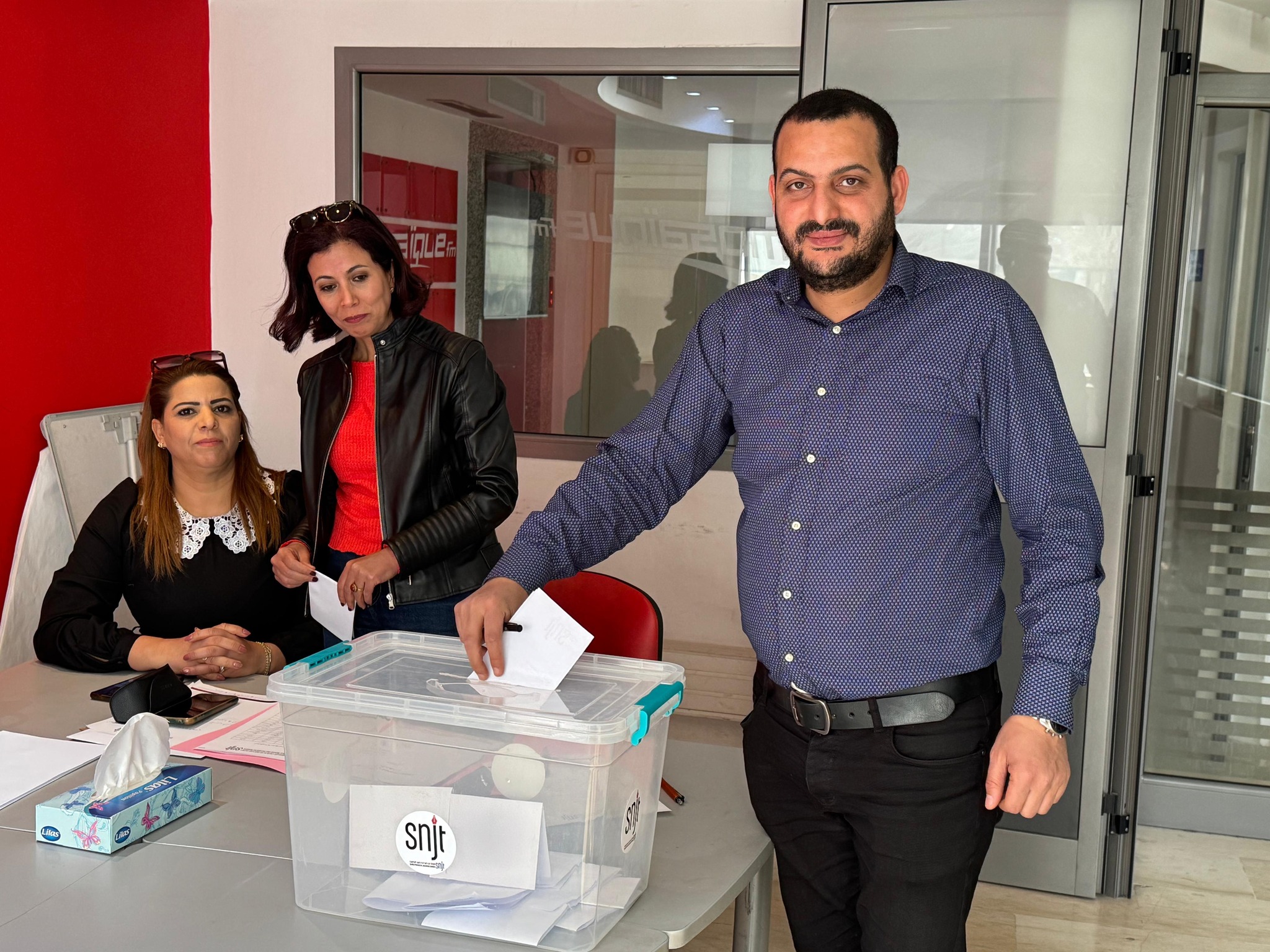 تم اليوم الجمعة 14 فيفري 2025، إجراء انتخابات تأسيس فرع النقابة الوطنية للصحفيين التونسيين بإذاعة موزاييك أف أم للمدة النيابية 2023-2026، وذلك بحضور كل من نقيب الصحفيين زياد دبار، والمكلف بالنظام الداخلي كريم وناس، وأمينة المال جيهان اللواتي، والمكلف بالشؤون القانونية والمهنية ياسين القايدي، والمكلفة بالشؤون الاجتماعية حبيبة العبيدي وأميرة محمد عضو مكلف بالثقافة والاتصال والعلاقة مع المجتمع المدني.