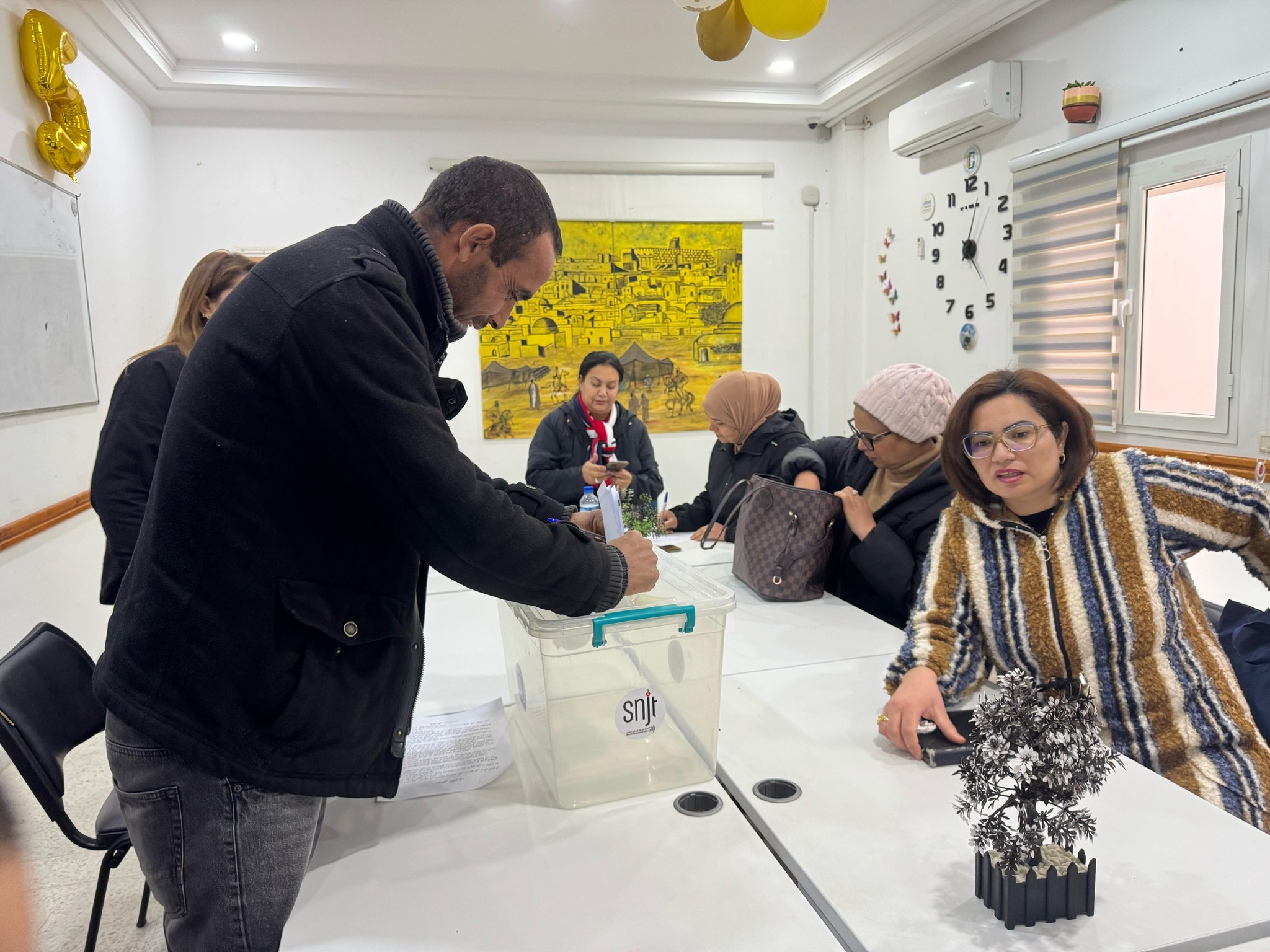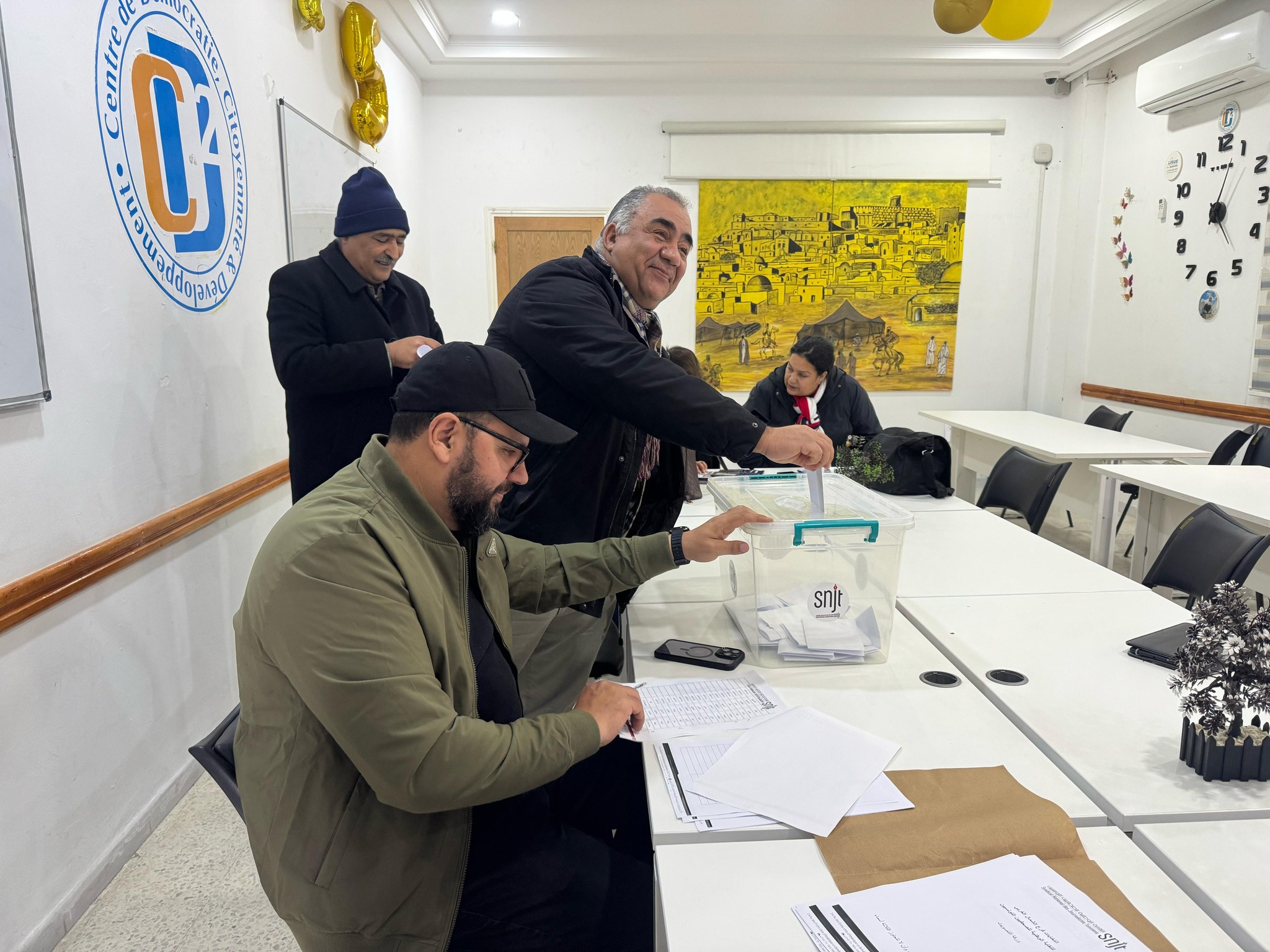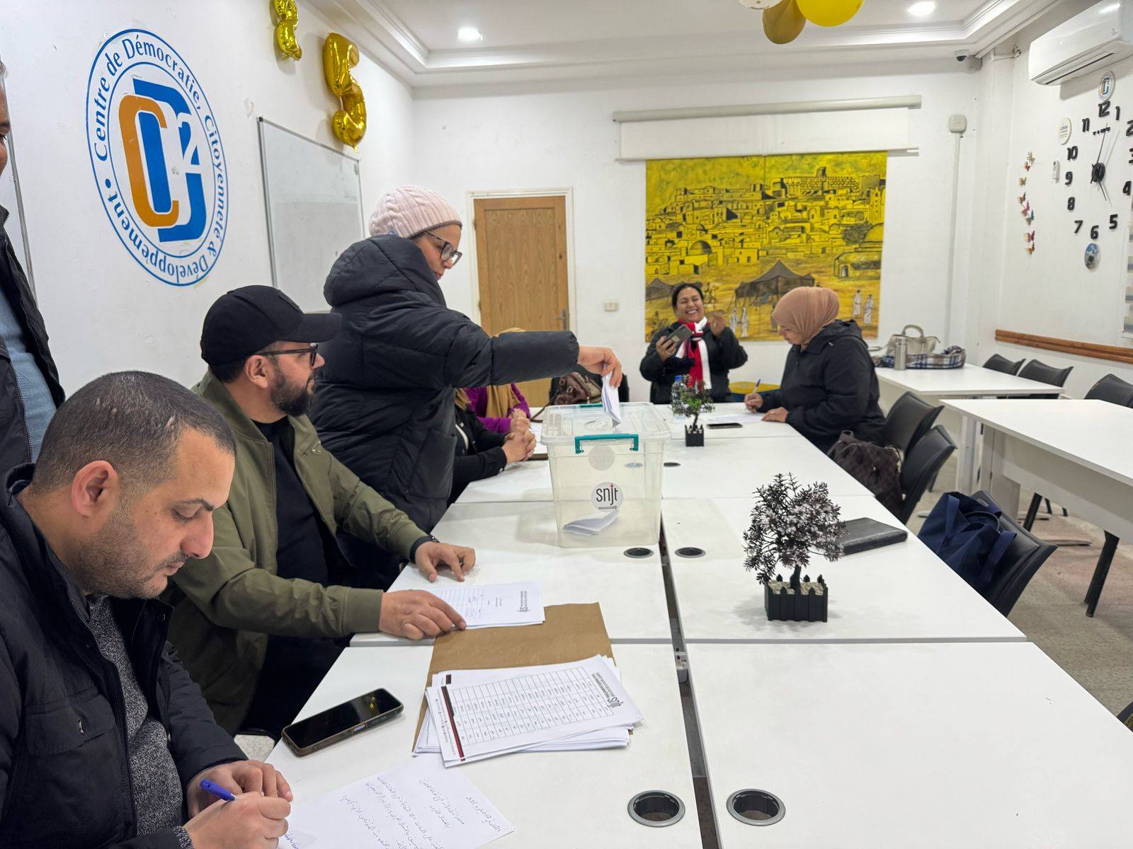 تم اليوم الإثنين 17 فيفري 2025، إجراء انتخابات تجديد فرع النقابة الوطنية للصحفيين التونسيين بالشمال الغربي للمدة النيابية 2023-2026، وذلك بحضور كل من نقيب الصحفيين زياد دبار ، ونائب الرئيس عايدة الهيشري والمكلف بالنظام الداخلي كريم وناس، وأمينة المال جيهان اللواتي،والمكلف بالشؤون القانونية والمهنية ياسين القايدي، والمكلفة بالشؤون الاجتماعية حبيبة العبيدي.