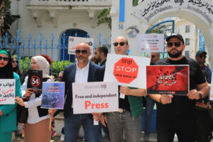 كما نظمت النقابة وقفة تضامنية مع الصحفيين/ات التونسيين/ات المسجونين/ات ومع شهداء الصحافة الفلسطينية شارك فيها الاتحاد الدولي للصحفيين والصحفيين/ات والعديد من وسائل الإعلام المحلية والأجنبية وأنصار حرية الصحافة والتعبير.