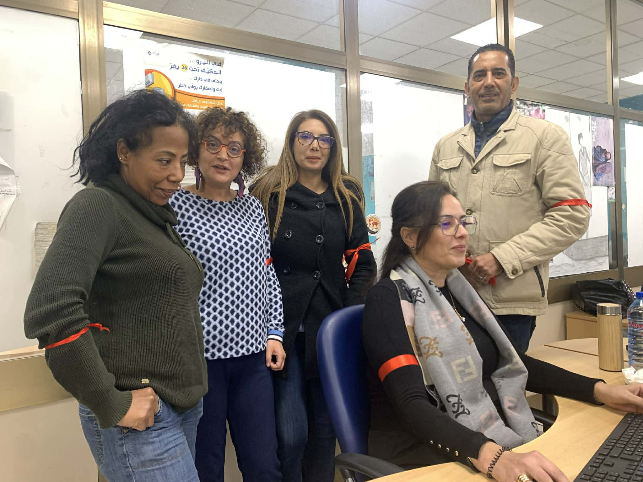 ارتداء الشارة الحمراء من قبل الزميلات والزملاء في وكالة تونس إفريقيا للأنباء